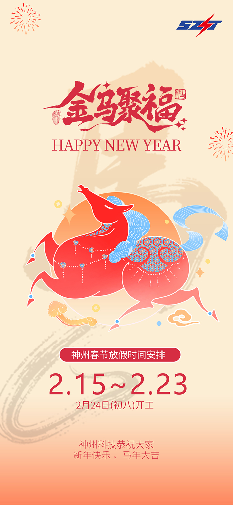金马聚福,神州科技恭祝大家新年快乐,马年大吉!